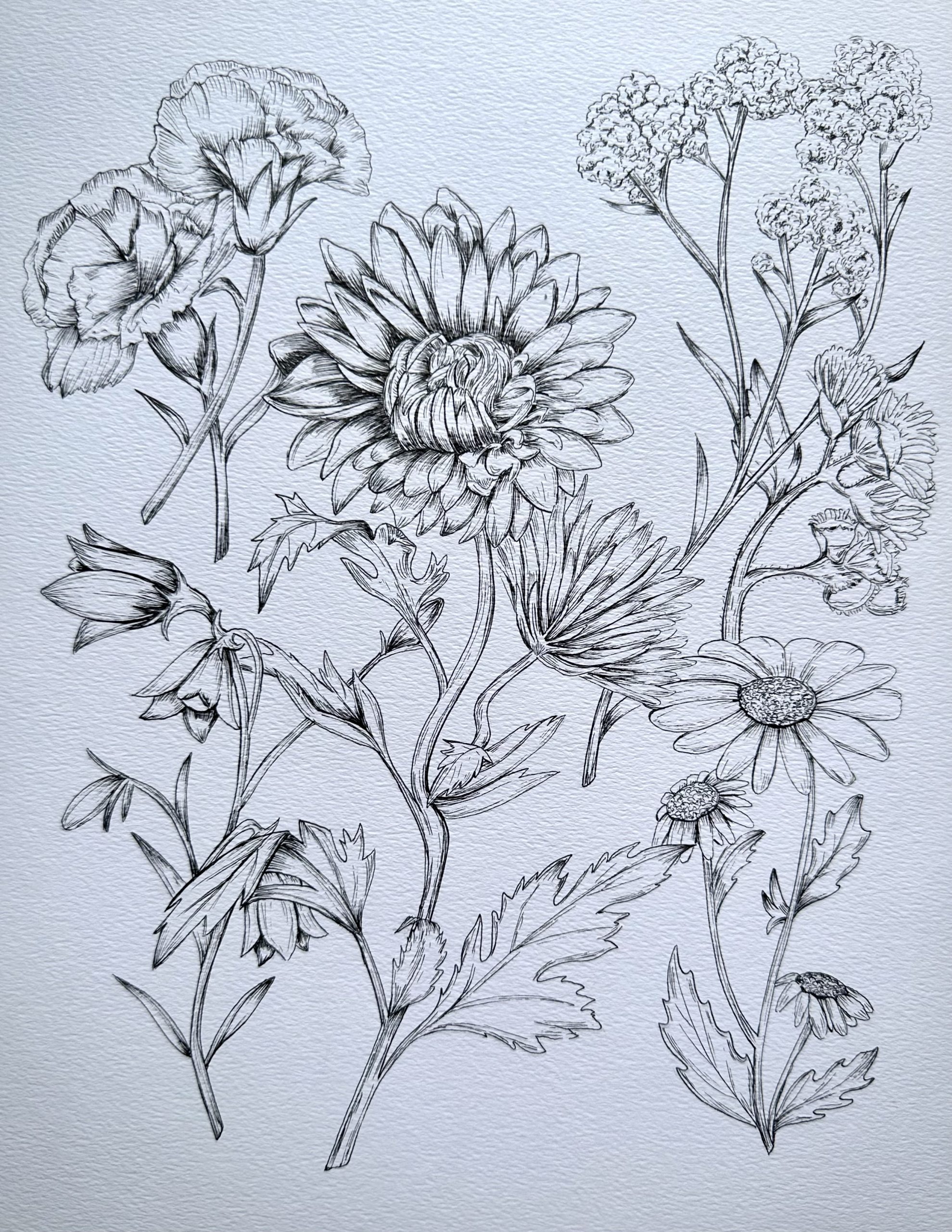 Charcoal on paper gesture and contour drawing of a still-life